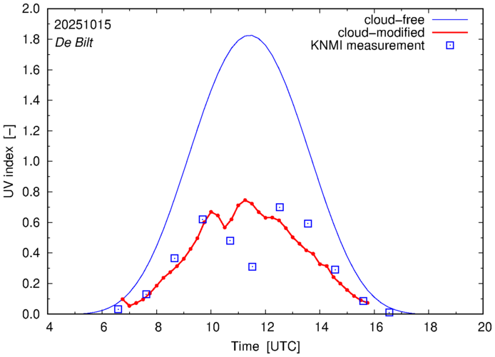Daily cloud-modified erythemal UV index for The Netherlands |