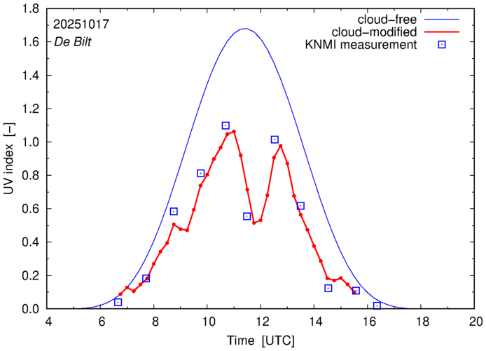 Daily cloud-modified erythemal UV index for The Netherlands |