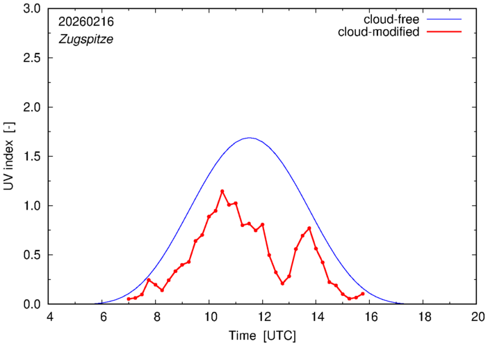UV index for Zugspitze of 16 February 2026 UV index for Munich of 16 February 2026