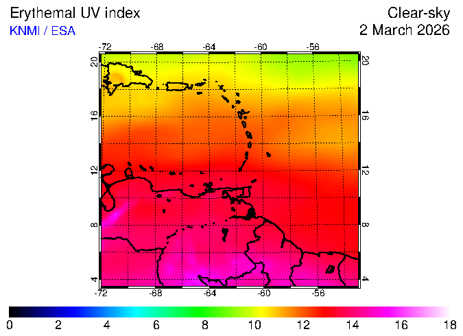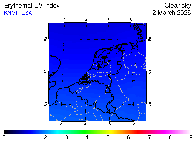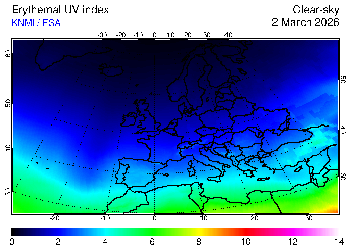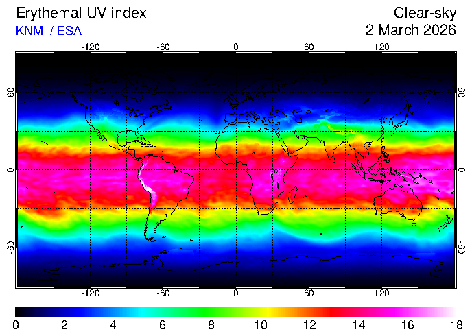 Clear-sky UV index:   erythemal