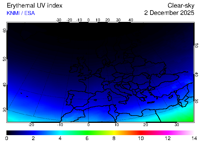 Clear-sky UV index:   erythemal
