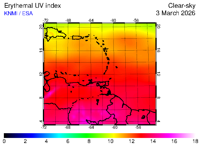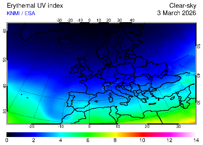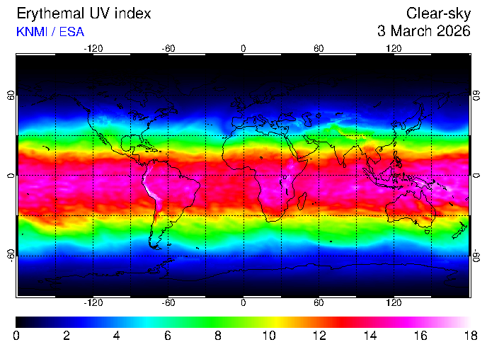Clear-sky UV index:   erythemal