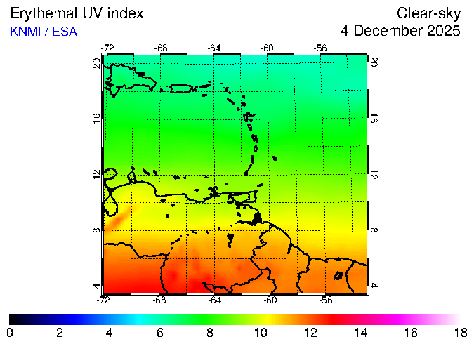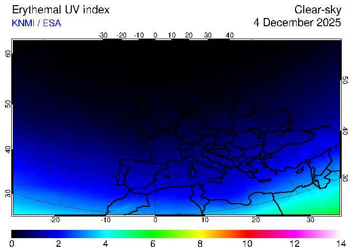 Clear-sky UV index:   erythemal