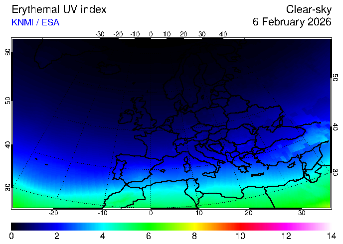 Clear-sky UV index:   erythemal
