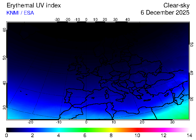 Clear-sky UV index:   erythemal