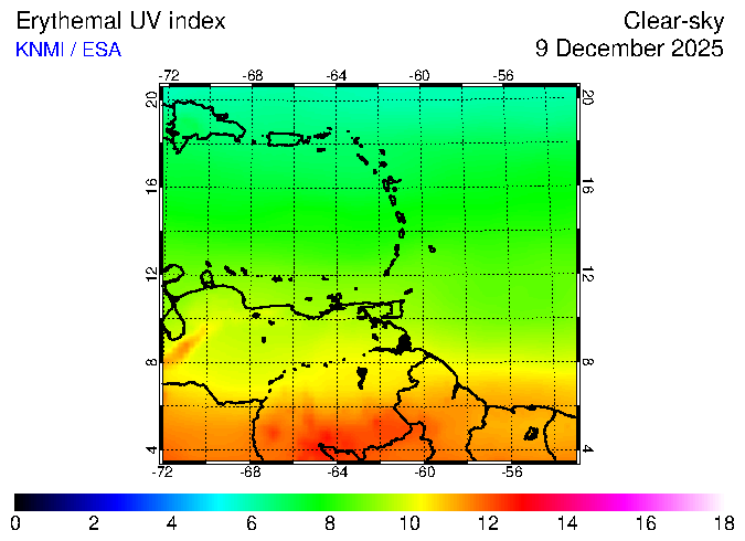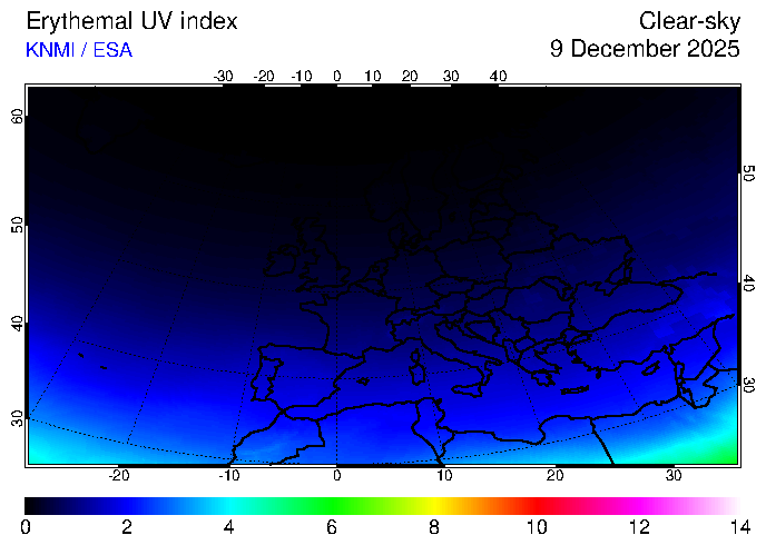 Clear-sky UV index:   erythemal