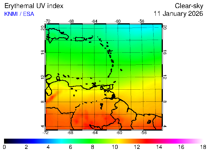 Clear-sky UV index:   erythemal