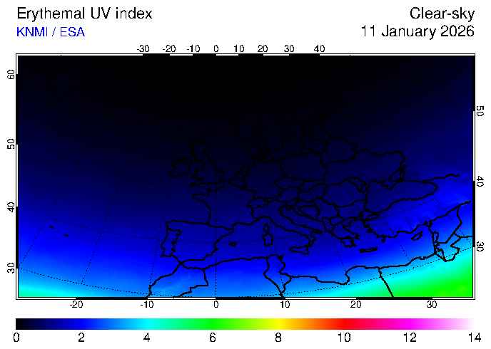 Erythemal UV index of 11 January 2026