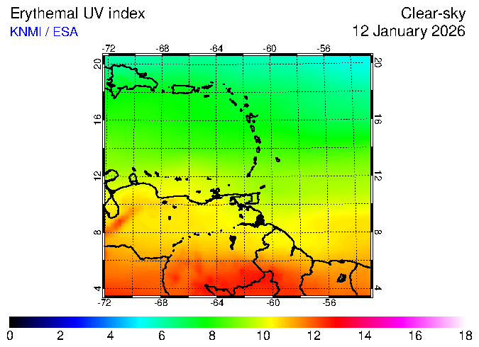 Clear-sky UV index:   erythemal