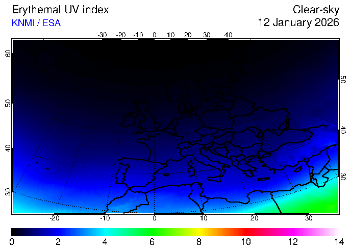 Erythemal UV index of 12 January 2026