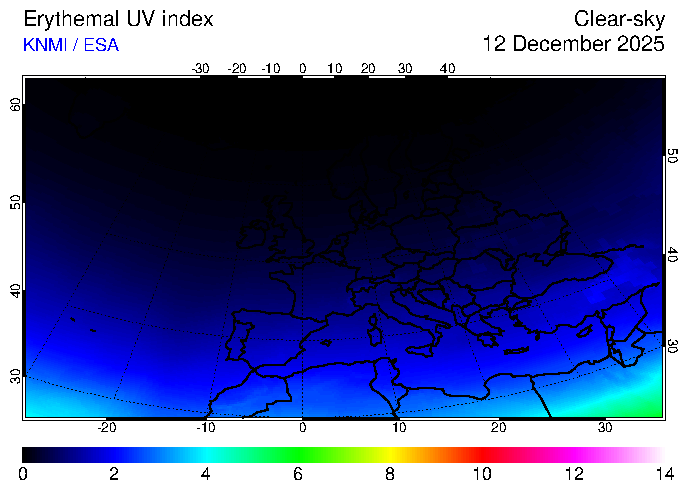UV index of 12 December 2025 UV index of 12 December 2025