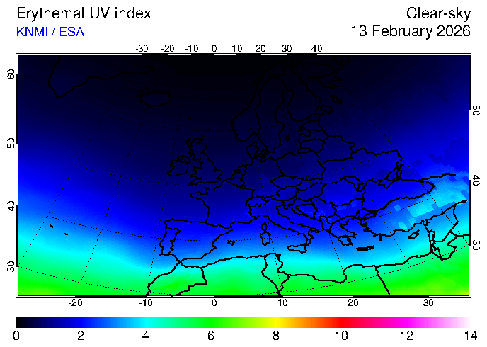 UV index of 13 February 2026 UV index of 13 February 2026