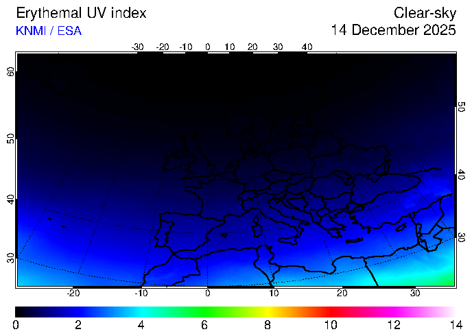 UV index of 14 December 2025 UV index of 14 December 2025