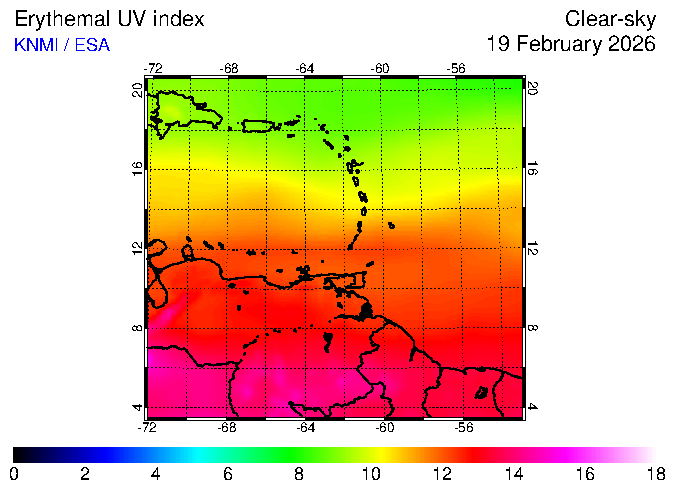 UV index of 19 February 2026 UV index of 19 February 2026