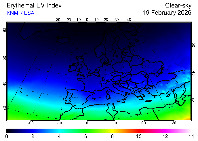 Erythemal UV index of 19 February 2026