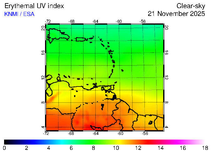 Clear-sky UV index:   erythemal
