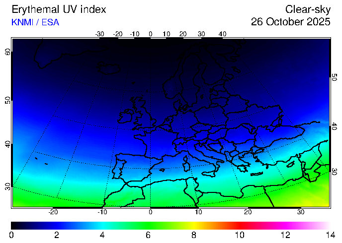 Erythemal UV index of 26 October 2025